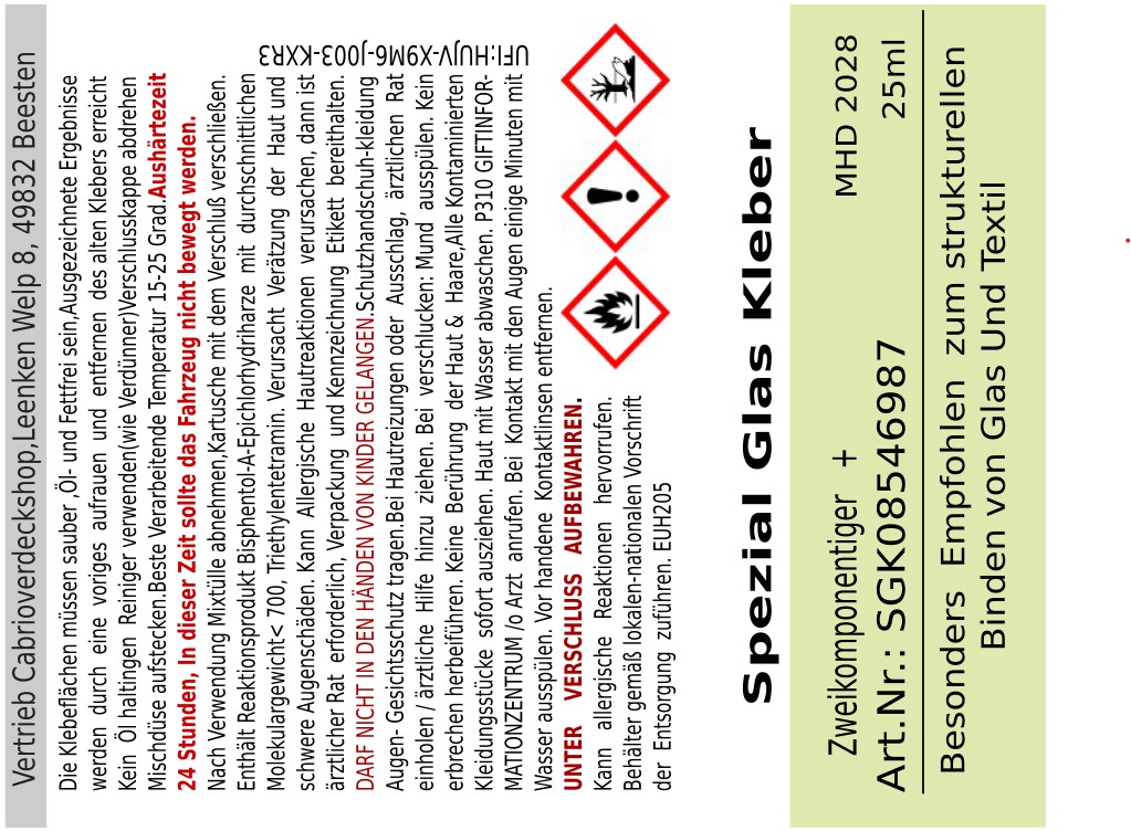 Alten Kleber komplett entfernen, auf der Scheibe so auch am Verdeck.Dazu kann man ein Cuttermesser oder Schmirgelpapier benutzen. Wir empfehlen 60-80 Körnung Schmierregelpapier. Dann reinigen, mit Aceton oder Waschbenzin.